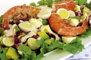 leia maisSalada com camarões e ovos de codorna